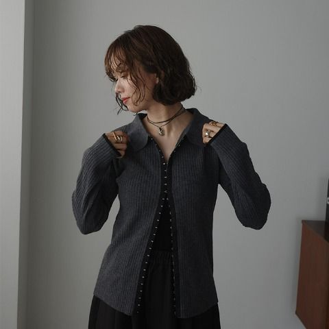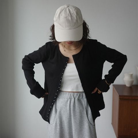カーデとしても、ホックを閉じてトップスでも着用できるアイテムです。