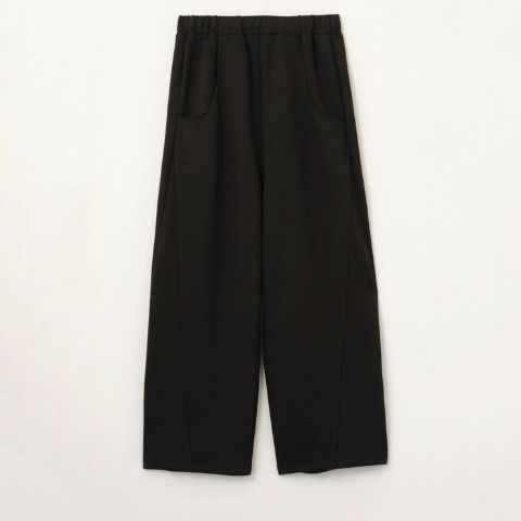 肌触りのよい柔らかなダンボールニット素材のコクーンパンツ。前左右のビッグポケットが特徴です。ウエストに平ゴムが入っているのでウエストまわりがラク。後ろにもポケット付きでお尻周りの体型カバーになるのも嬉しいポイント◎