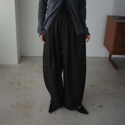 ヒップやもも回りにボリューム感があり、裾にかけてすっきりとしていくバルーンシルエットです。
