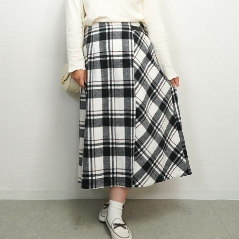 これからの季節にぴったりのシャギーチェック柄スカートです。脇バイアス切替デザインがポイントです◎合わせやすいブラックとトレンドのブラウンチェックです♪