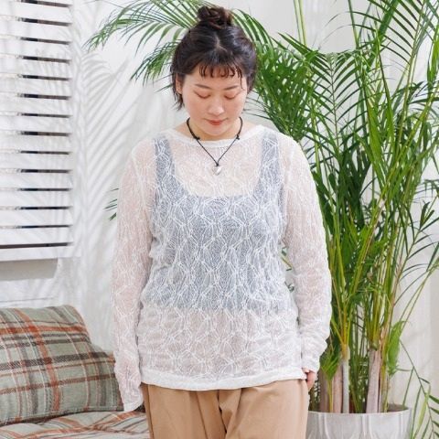 程よい透け感のある繊細なレース素材が魅力のシアートップスです。