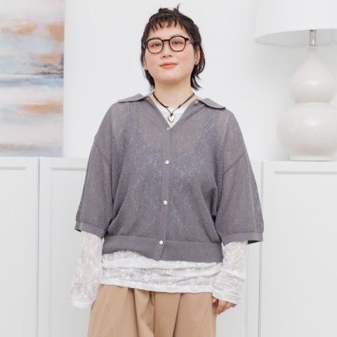 衿付きメッシュニットカーディガンです。