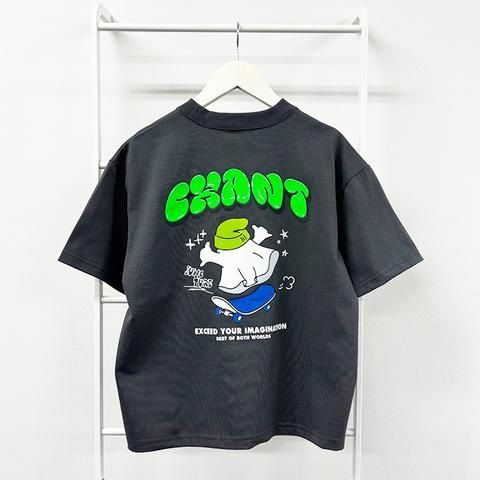 バックプリントにはスケボーを乗りこなすおばけモチーフを大胆に配置し、ストリート感のある仕上がりに。