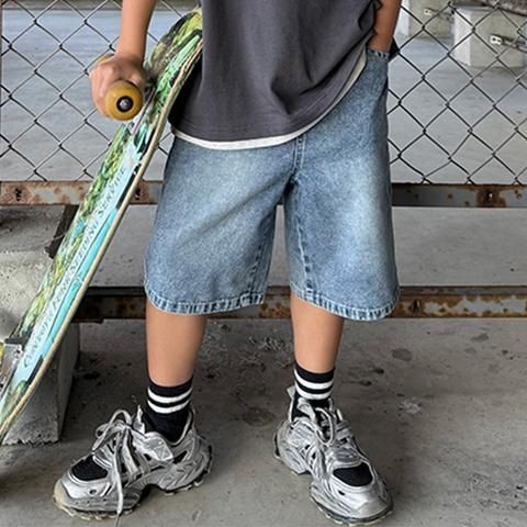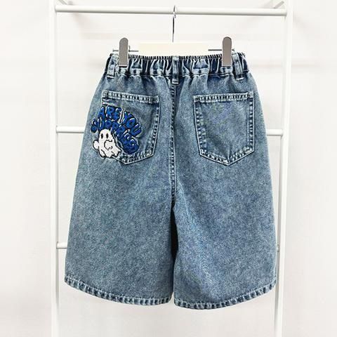 ピクセルドットのオバケ刺繍を施したハーフパンツ