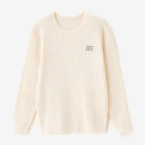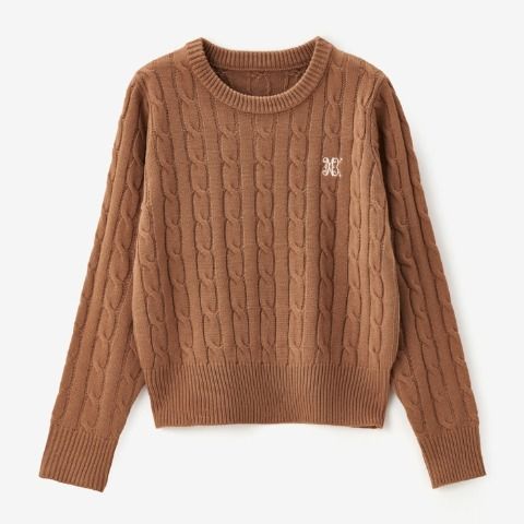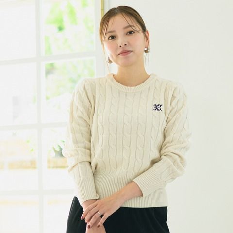 ロゴジャカードと刺繍がポイントのニットプルオーバー。