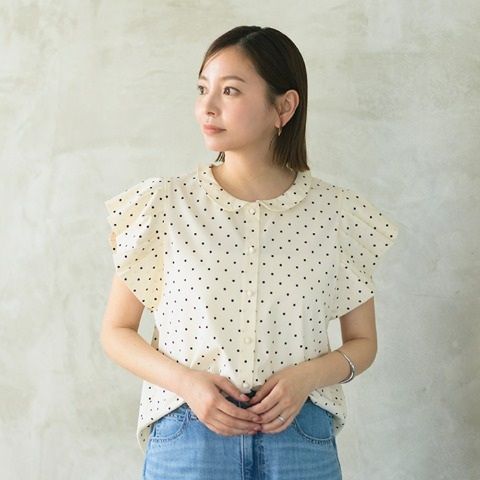 ほどよくきちんと感のある衿デザインと、肩先をやさしく覆うフレンチスリーブで、シンプルながらも大人っぽい印象に仕上げました。