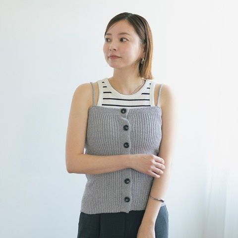 リブ編みがすっきり見えするニットキャミビスチェ。