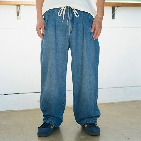 ウエスト周りはスッキリさせながら、ストンと落ちる程よくバギーシルエット。