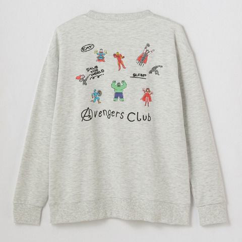 バックにMARVELのキャラクターをプリントした、裏毛素材のトレーナーです。