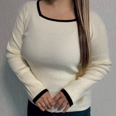 デコルテを美しく見せるスクエアネックが魅力のプルオーバーです。