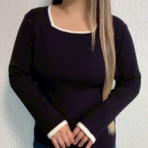 顔周りがすっきり見えするスクエアネックのプルオーバー。