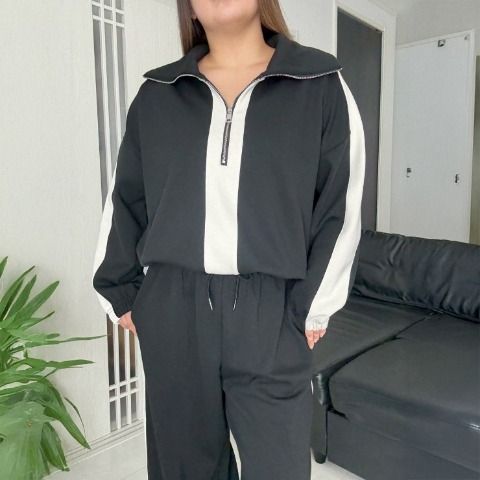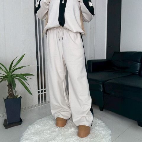 同素材のハーフZIPプルオーバーと合わせれば、トレンド感のあるセットアップスタイルも楽しめます。