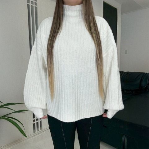 丸みのある袖と程よいショート丈が、スタイルアップを叶えるボトルネックトップスです。
