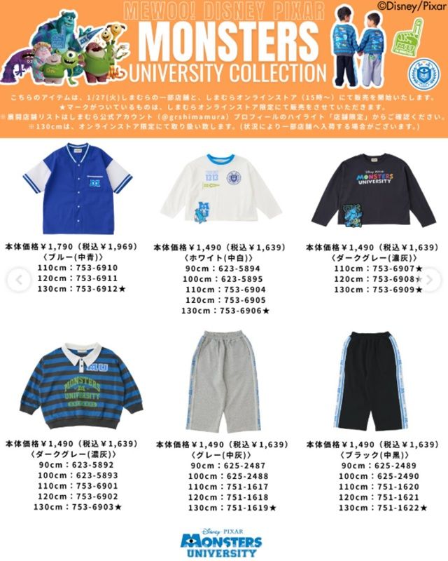 しまむら『mewoo!(ミュウ!)』コラボ!「モンスターズ・ユニバーシティ」のシャツやパンツの春の子供服が2026年1月27日(火)より新発売!