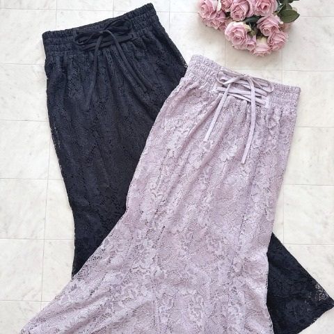 マーメイドシルエットでスタイルアップ効果抜群のスカート。 バックレースアップデザインなので、お好みのフィット感で着用ができる嬉しいアイテムです。 存在感がありつつもレースならではの上品さがあるので、お出かけはもちろん、オフィスなどきちんとしたシーンにも対応できます。