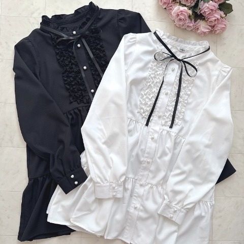 フリルデザインと、ボウタイが1枚で主役になるブラウスです。 お手持ちのシンプルなボトムと合わせるだけで華のあるスタイリングに。 花柄やレースのフレアスカートを合わせた王道フェミニンスタイルや、マーメイドスカートやミニボトム合わせもおすすめです。