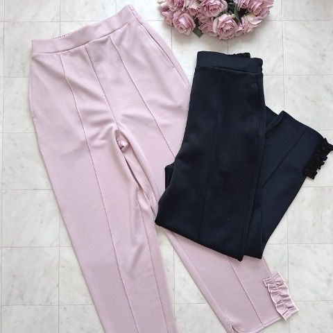 裾のパールモチーフが華やかな印象にしてくれるパンツ。