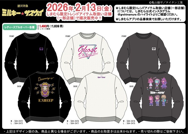 しまむら『銀河特急 ミルキー☆サブウェイ』コラボ!トレーナー(プルオーバー)が2026年2月13日(金)より発売!