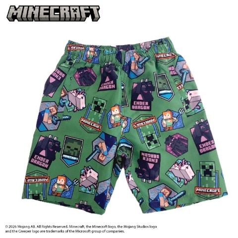 みんなに大人気【マインクラフト】からスイムパンツが登場!!ワッペン風の総柄がカッコいい★この夏大活躍間違いなしの一枚です♪