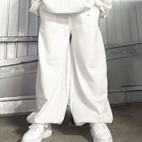 中肉のメランジ起毛カットソーを使用したバレル型ダブルニーパンツです。