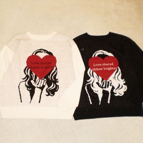 女性モチーフがインパクトのあるジャカードニットです。