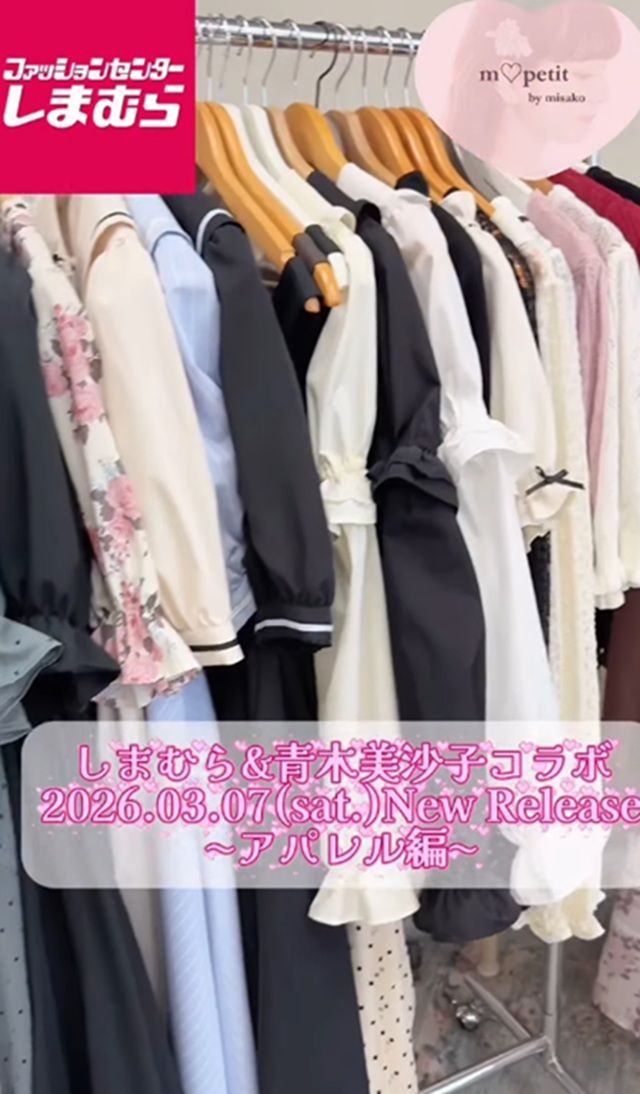 しまむらでは、2026年3月7日(土)~『青木美沙子』コラボを販売します。【m♡petit by misako】の商品で、クラシカルでカワイイ春から初夏まで使いたいアパレルや雑貨がラインナップ!