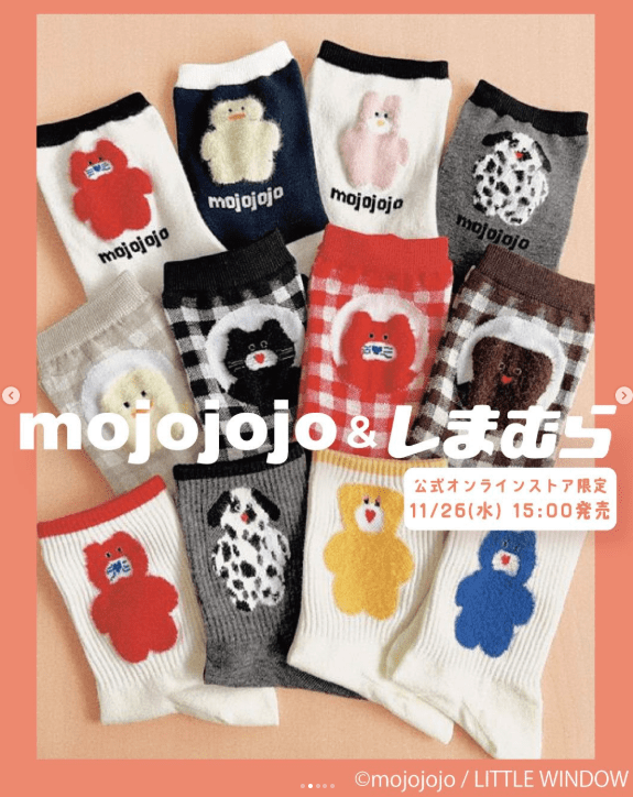 しまむら『mojojojo』コラボを2025年11月26日(水)~販売します。ソックスがラインナップ!オンラインストア限定で販売です!