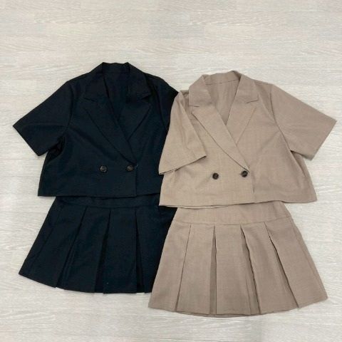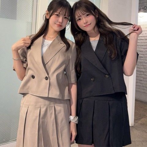 お出かけにコーデにピッタリな半袖ジャケットセットアップになります◎