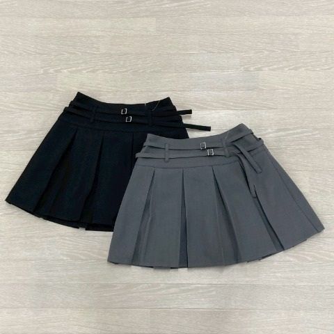 ダブルベルト仕様が目を惹くプリーツミニスカートになります。