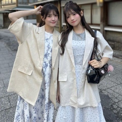どんなコーデにも合わせやすい半袖ジャケットになります。