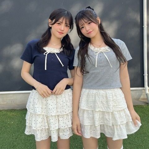 清涼感を感じるフリルミニスカート。可愛らしいフリルデザインでお出かけコーデにピッタリ◎
