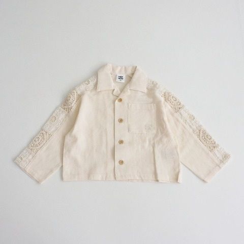 肩から袖にかけてレースの透け感がオシャレな長袖シャツ、