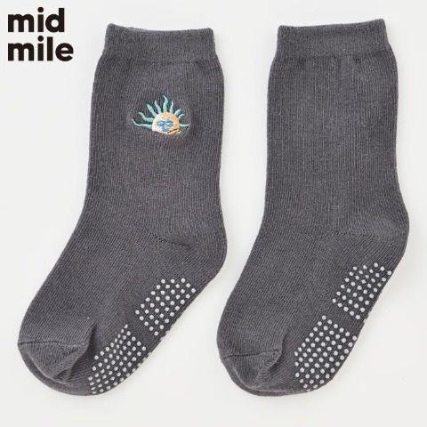 他と合わせやすい太陽のワンポイント刺繍の靴下です。