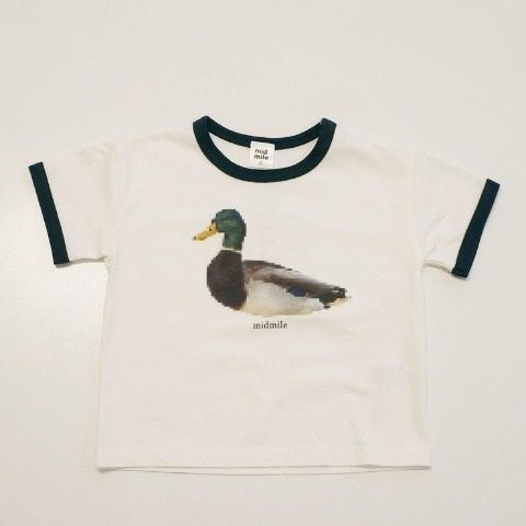 ピクセル風の鴨がとっても個性的なリンガーTシャツ。