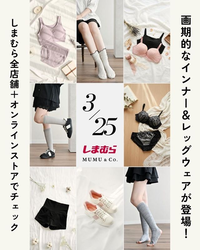 しまむら『MUMU』コラボを2026年3月25日(水)~販売します。「ブラレボリューション」企画でインナー、立ったまま、手を使わずにさっと履ける『スムーズINスニーカー』などがラインナップ!