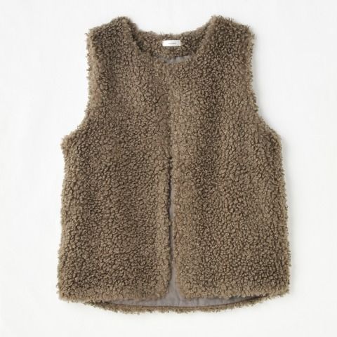 プードルのような、くるくるとした毛足がかわいらしいボアジレベストです。