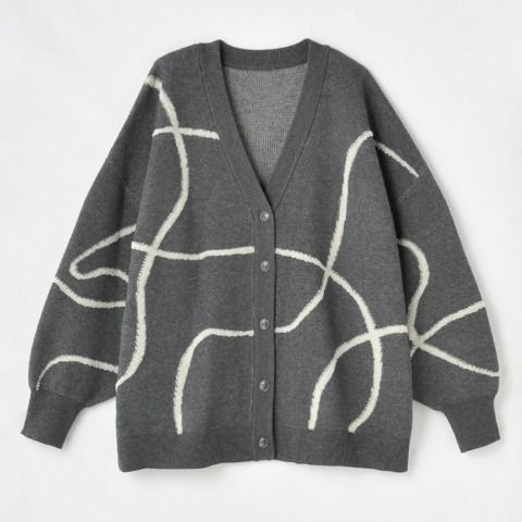 ニュアンス柄が目を惹くVネックニットカーディガン。