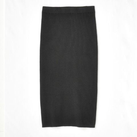 縦リブ編みですっきりとしたシルエットのナロースカート 細かいラメがさりげなく光を反射し華やかを演出♪ ウエストゴム仕様で快適なフィット感&着脱もラク♪