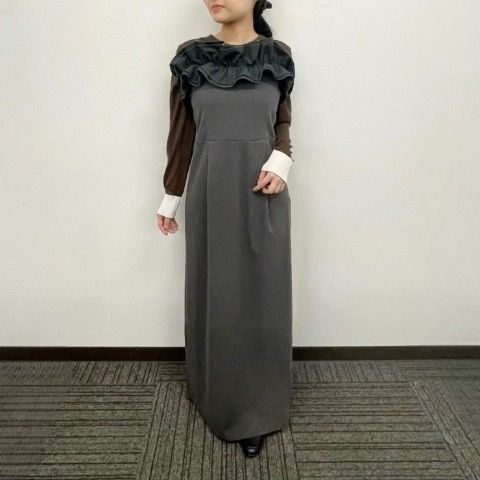 胸元のブロードフリルが上品なアクセントのキャミワンピース。