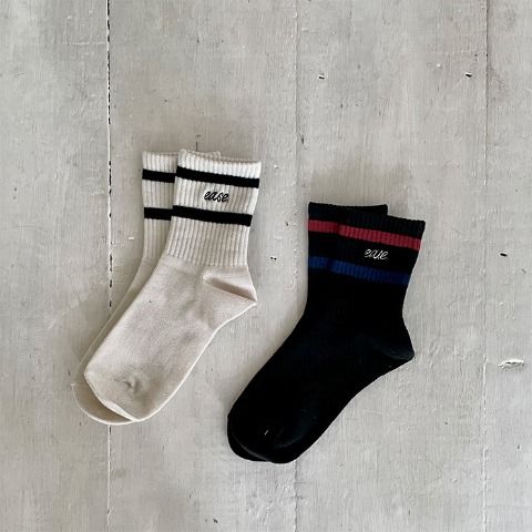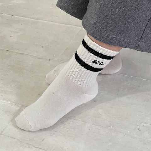 ラインデザインにロゴ刺繍がデザインのアクセントになっているクルーソックスです◎