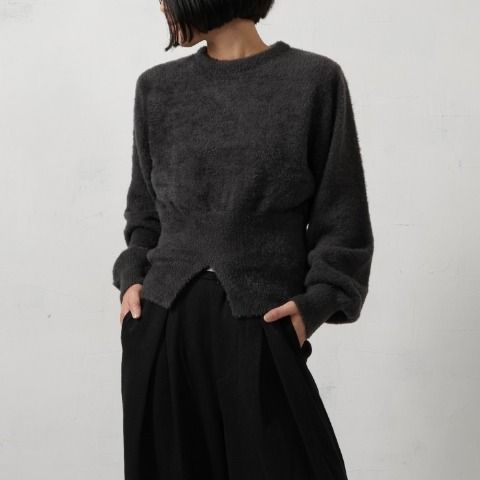 フェザーヤーン素材と裾スリットでトレンド感抜群のニットプルオーバー。