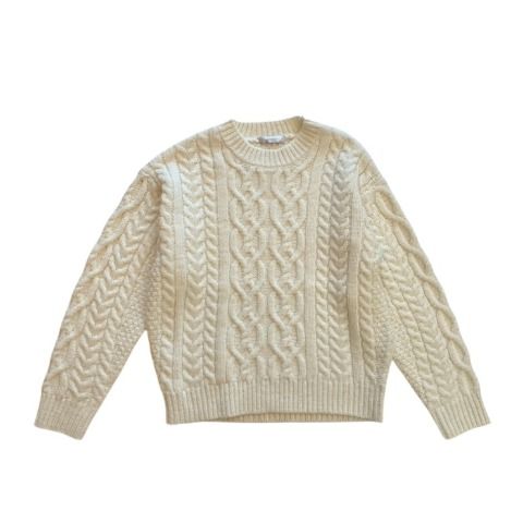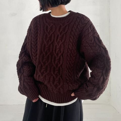 立体的なアラン柄の編地がおしゃれなニットプルオーバー。