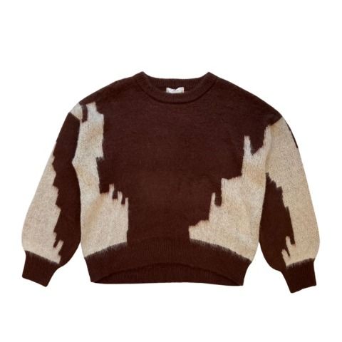 起毛加工でふんわりとした編地のニュアンス柄ニットプルオーバー。