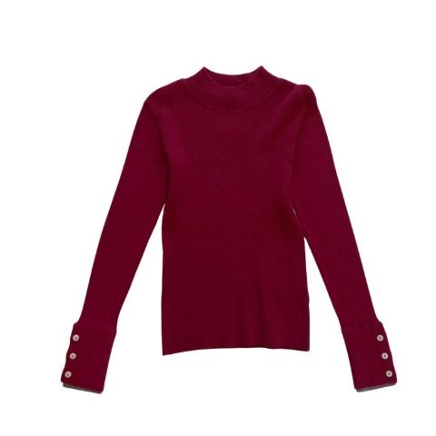 袖口の釦とレイヤード配色がポイントのリブニットプルオーバー。