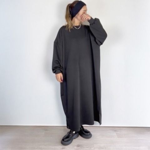 ゆったりサイズでリラックス感たっぷり、女性らしいカジュアルコーデにぴったり。