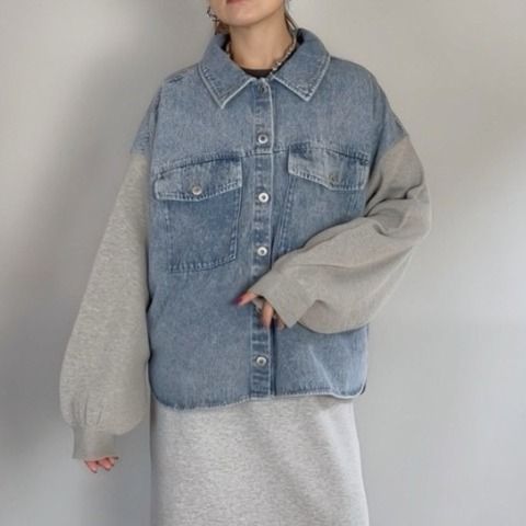 カジュアルなデニムボディに柔らかいニット袖を組み合わせたアイテム。