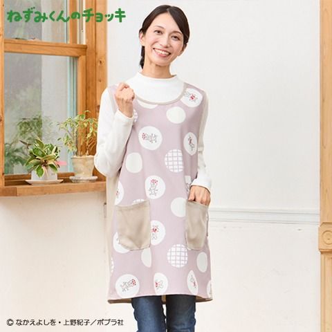 「ねずみくんのチョッキ」より、エプロンが登場です!ねずみくんとねみちゃんの総柄が可愛らしいデザインのエプロンです♪