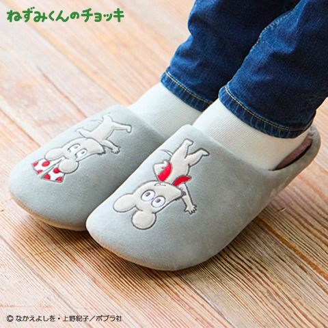 「ねずみくんのチョッキ」より、ルームシューズが登場!ねずみくんをねみちゃんがを追いかけてる様子がとっても楽しそう♪