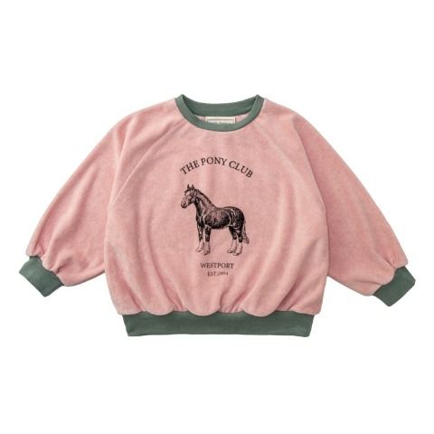 ストレッチの効いたやわらかいベロア素材のトレーナーです。