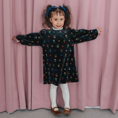 花柄がかわいい、ベロアのワンピースです。
